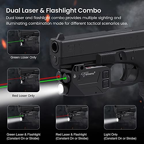 Dual Laser Flashlight Combo – Built-in green and red gun laser beam, <5mw output, 520nm & 650 wavelength and Class IIIa which meets Safety Requirements. The pistol laser light combo…